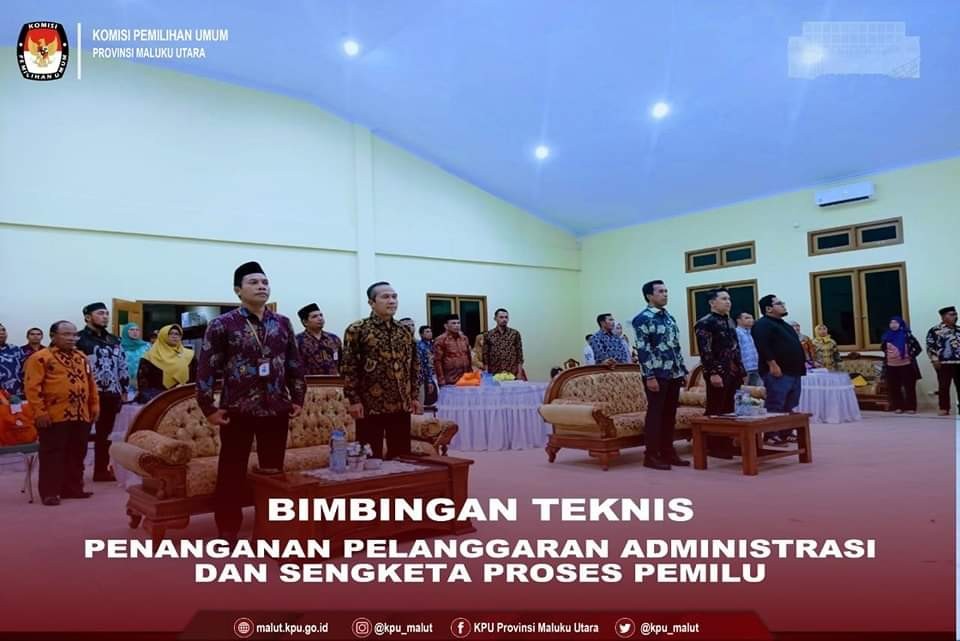 malut.kpu.go.id -Ternate.Ketua Komisi Pemilihan Umum (KPU) Maluku Utara (Malut), Pudja Sutamat, didampingi anggota KPU Malut, Mohtar Alting, membuka kegiatan bimbingan teknis (bimtek), Sabtu (26/11), di Hotel Tiara Halmahera, di desa Fidi Jaya Kabupaten Halmahera Tengah. Bimtek Penanganan Pelanggaran Administrasi dan Sengketa Proses Pemilu bagi KPU Kabupaten dan Kota, ini, melibatkan seluruh KPU yang ada di Malut. Para peserta bimtek meliputi Komisioner Divisi Hukum dan Pengawasan, Sekretaris KPU, serta Staf Pelaksana Sub Bidang Hukum dan SDM. Kegiatan selama tiga hari ini diisi oleh empat nara sumber. Dari internal KPU Malut, Mohtar Alting. Dua lainnya yakni dari akademisi dan praktisi hukum, Dr. Rudhi Achsoni, S.H., LL.M., dan Hendra Kasim, S.H., M.H. Serta Plt. Kepala Bagian P4S dan Hukum Badan Pengawas Pemilu Malut, Irwanto Djurumudi. Ketua KPU Malut, Pudja Sutamat, menaruh harapan besar agar ilmu terapan yang diperoleh dalam bimtek ini, menjadi bekal profesional bagi para peserta dalam penanganan pelanggaran administrasi dan proses sengketa pemilu nanti. "Jika ada sengketa mampu menjawab semua pertanyaan," pungkas Pudja. Bimtek ini ditutup oleh anggota KPU Malut, Mohtar Alting, yang didampingi Sekretaris KPU Malut, Efendi Latuconsina.(ZD)