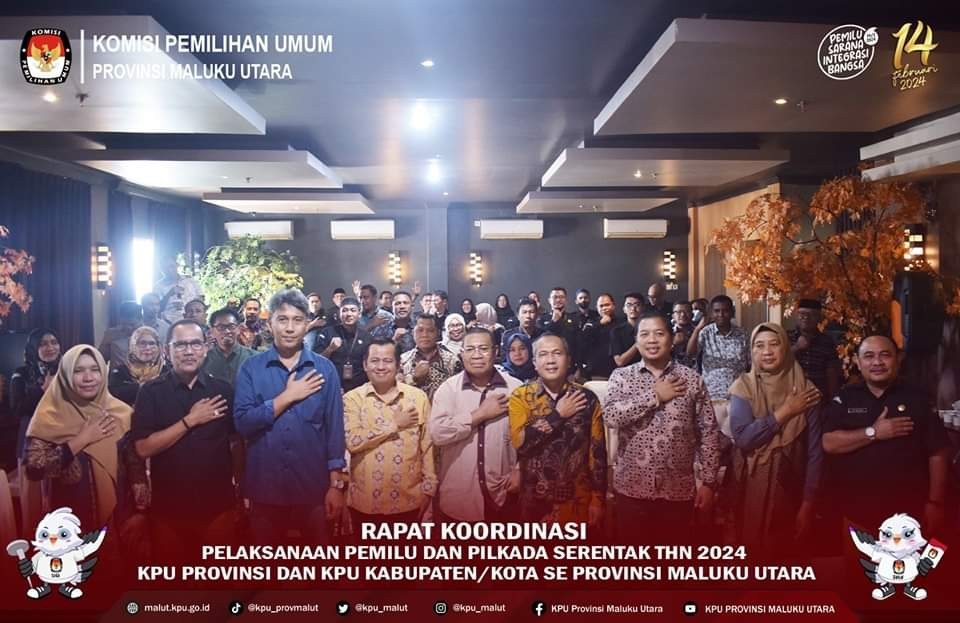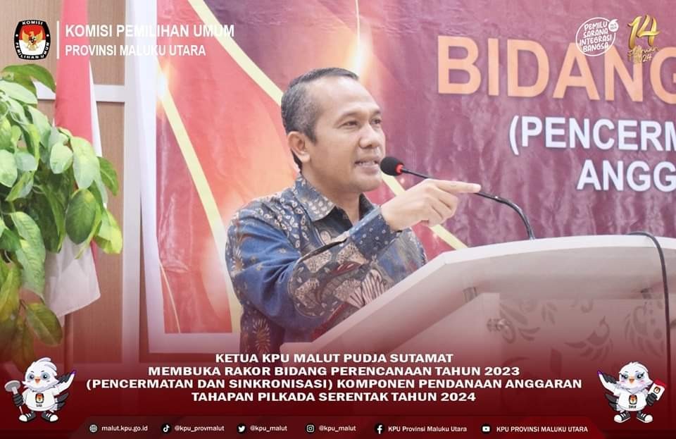 Malut.kpu.go.id-Ternate, Ketua KPU Provinsi  Maluku Utara, Pudja Sutamat, bersama anggota Buchari Mahmud, Mohtar Alting, Reni SA Banjar, dan Safrina Rahma Kamaruddin, didampingi Sekretaris KPU Malut, Efendi Latuconsina, membuka rapat koordinasi (rakor) Bidang Perencanaan (Pencermatan Dan Sinkronisasi) Komponen Pendanaan Anggaran Tahapan Pilkada Serentak Tahun 2024, di Hotel Batik, Jalan Kapitan Pattimura, Kota Ternate, Sabtu (18/11).  Rakor selama dua hari  ini, menghadirkan peserta Ketua KPU, anggota KPU Divisi Perencanaan Data dan Informasi, Sekretaris, Kepala Sub Bagian Perencanaan Data dan Informasi, dari sepuluh KPU kabupaten/ kota di Malut. Pudja menjelaskan terkait  Naskah Perjanjian Hibah Daerah (NPHD) yang telah ditandatangani, masih akan berubah mengingat komponen yang ada di dalam kesepakatan itu berbeda dengan Rencana Kerja Anggaran (RKA) KPU kabupaten/ kota.  Pelaksanaan Rapat Koordinasi ini bertujuan untuk melakukan sinkronisasi sharing kompenen pendanaan anggaran KPU Provinsi dan KPU kabupaten/kota, serta melakukan percermatan dan sinkronisasi juga persamaan persepsi sharing cost, dengan harapan agar dalam pelaksanaan mekanisme penganggaran, pengelolaan dan pengadministrasian hibah APBD dapat berjalan sesuai dengan ketentuan peraturan perundang-undangan. Serta  pelaksanaan awal setelah NPHD dilakukan register hibah Pilkada pada Daftar Isian Pelaksanaan Anggaran (DIPA) Anggaran Pendapatan Belanja Negara (APBN) berjalan sesuai dengan ketentuan yang berlaku. Kegiatan ini dilanjutkan dengan pengarahan umum dari seluruh Anggota KPU Malut, dalam hal ini Reni S.A Banjar sebagai Pengampuh Divisi Perencanan, Data dan Informasi turut memaparkan materi tentang Pendanaan Kegiatan dan Saring Cost Pilkada 2024 serta progres Penandatangan Naskah Perjanjian Hibah Daerah (NPHD) terakhir dilanjutkan materi oleh Sekretaris KPU Malut. Pada agenda siang pukul 14.00 WIT, hadir Narasumber dari DJPb Kanwil Wilayah Malut dengan Tema:" Pengajuan dan Penerbitan Register Hibah Pilkada" dan materi Kesbangpol dengan tema "Dukungan Pemda terkait Kesiapan Pendanaan Pilkada serta mekanisme pendanaan bersama".(*ZD)