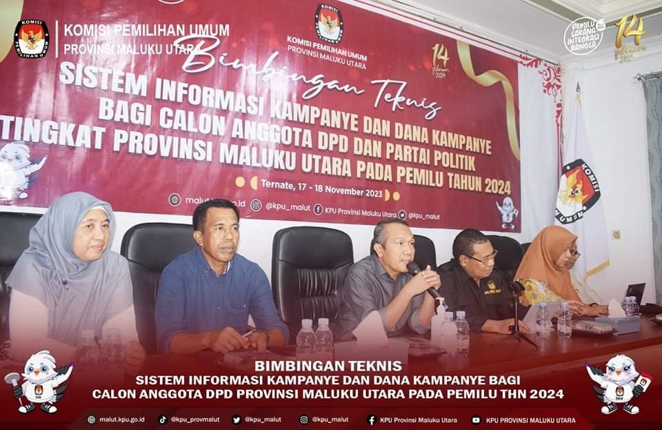 malut.kpu.go.id -Ternate, Ketua KPU Malut Pudja Sutamat bersama Anggota Buchari Mahmud, Mohtar Alting, Reni SA. Banjar, dan Safrina Rahma Kamaruddin, membuka Bimbingan Teknis Sistem Informasi Kampanye dan Dana Kampanye Pemilu Tahun 2024 Bagi Calon Anggota DPD Tingkat Provinsi Maluku Utara, di sekretariat KPU Malut Kotabaru Ternate, Jumat  (17/11/2023). Dalam sambutannya, Pudja menjelaskan pentingnya aplikasi ini untuk di ketahui oleh peserta pemilu dan harapannya setelah mengikuti bimtek ini, peserta dapat  mencatat dan membukukan semua transaksi dan diaplikasikan kedalam aplikasi SIKADEKA. Dalam kesempatan yang sama Divisi Teknis Penyelenggaraan Pemilu, Buchari Mahmud menjelaskan SIKADEKA merupaan system informasi berbasis web yang digunakan untuk membantu dalam mengelola kegiatan kampanye, pelaporan dana kampanye dan audit dana kampanye peserta pemilu tahun 2024. Kegiatan dilanjutkan dengan Bimbingan Teknis dan Uji coba SIKADEKA oleh Tim Teknis KPU Malut, turut hadir pelaksana harian sekretariat KPU Malut Samsul Bachri Assagaf.(ZD)